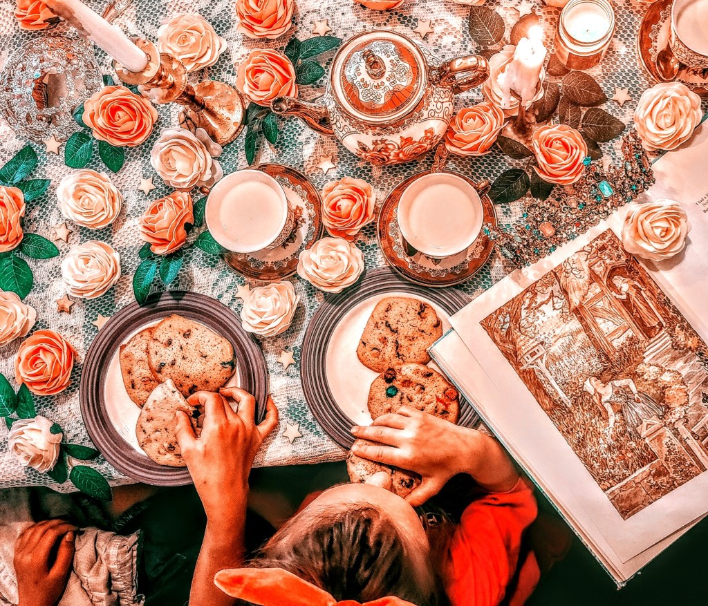This doesn’t have to be for children alone. Many a friends I have gotten together with for a spot of tea, a well decorated table and some themed snacks to fit the current story. Conversation is peppered with thoughts about the theme of a story or what the protagonist was thinking or what an antagonist motive was. Literary Tea Time is just a glorified book club that is occasionally accompanied with poetry, games, crafts and holiday fun.
