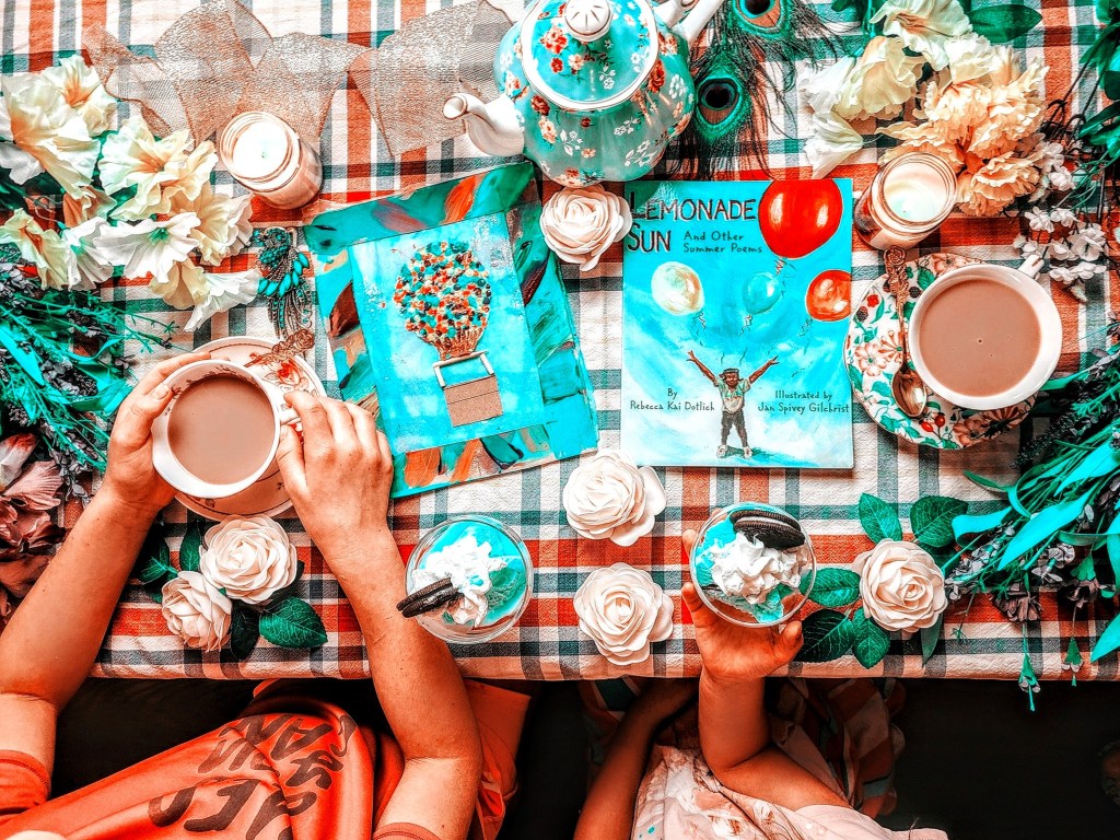 Memorize poems, and share them, write your own poems, stories, songs and read them aloud. Create on the spot poems, stories, songs or just bring you favorite book to share. A literary tea can be whatever you make of it. You can mix it up, make it seasonal, holiday filled, geographical or cultural. Occasionally we add in themed crafts and games as well.